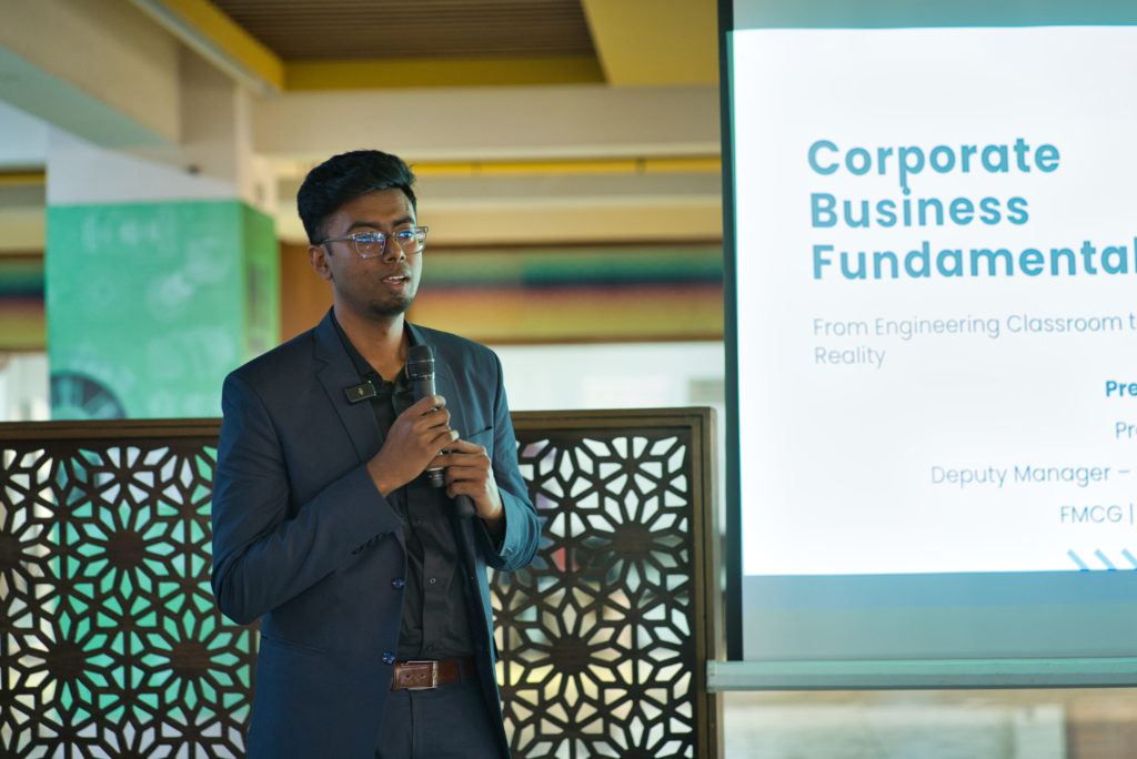 The workshop, titled Corporate Business Fundamentals, focused on introducing students to key business concepts relevant to engineering careers. As STEM graduates increasingly enter multidisciplinary work environments, understanding business decision-making, strategy, and value creation has become essential alongside technical expertise.